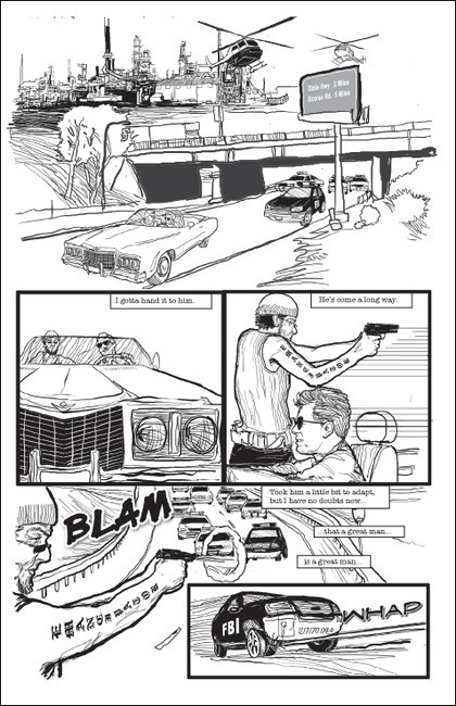 The opening of this series is what gets you and after that we see the beginnings of the story unfold. It really does border genius in it’s conception, execution, and enjoyment level. JFK is driving a rusted ‘72 Cadillac running from the Secret Service while Lincoln with an arm tattoo proclaiming Emancipator going down his arm is keeping them and the FBI off their tail. Turns out the 16th President of the United States is a crack shot with modern guns and while his speech pattern is definitely befitting the era he lived in, his enjoyment of modern armory devices is clearly evident.