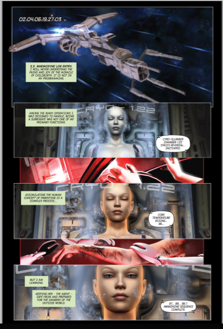 My initial response to this was it felt like some sort of first person shooter game kind of like an outer space Resident Evil. Which by the way wouldn’t be a bad thing cause I love the whole thought of viral outbreaks and how they can change people. Then there’s our main character; the very beautiful and bold Agent 1.22 who has been upgraded and programmed to deal with planetary conditions and what she might find there. That isn’t normal stuff but it’s still the kind of information that makes her a mute badass version of the genetically modified and cloned Ripley was.
