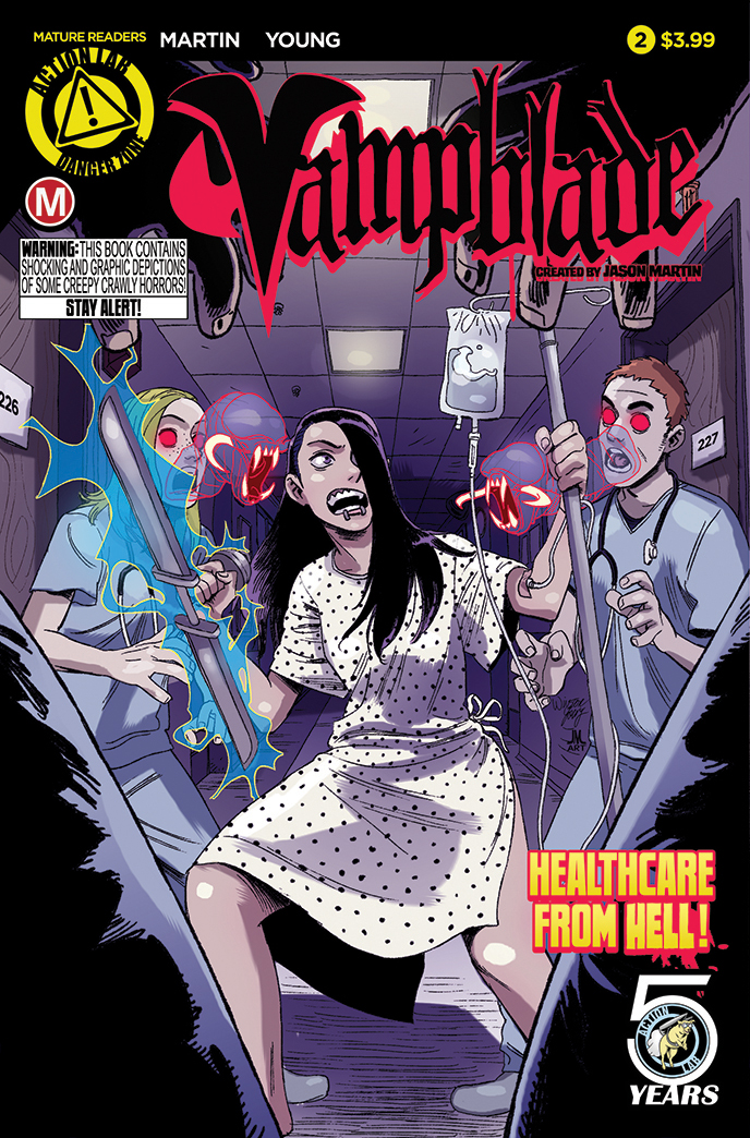 Summary: After transforming into the Vampblade and having her first encounter with the disgusting other-dimensional “space vampires”, Katie Karver winds up in the hospital. But now that she’s connected to the mystical blades there’s no place to hide from the vile otherworldly parasites that are drawn to them. Time to check out and kick ass!