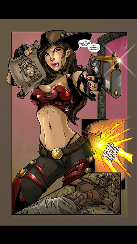 f comics and even now a days I’m seldomly checking any of it out. But when I saw some art Kelly had for Death-Rattler running around on Facebook and the like, I felt myself getting really interested in checking it out and thankfully the good Kelly allowed me to do so! Covered in fantastic art, inks, colors, and lettering from start to finish, Kelly acquired the right team for this book in my honest opinion. This is a Bad Girl I can get behind (minds out of the gutter!) as I really enjoyed her first issue far more then I did reading the only Lady Death trade I have.
