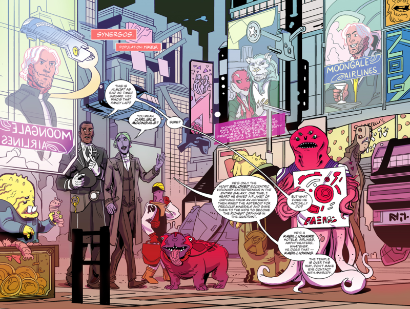 So while Henry finally gets to explore the galaxy only he’s known about, there’s another aspect at play as well. We meet the main villain here who’s thirst for power and control know no bounds. He’s a great bad guy, smooth and debonaire and surprisingly well respected, probably feared as well–think a Donald Trump type. This of course leaves our intrepid duo on an intergalactic adventure of epic proportions as the story plays out and we see what exactly Carlisle Moongale’s plans are.