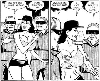 The other strength of the book is Hernandez’s art. Which is very simple and not really detailed in the slightest but that’s okay because not all art has to be. It’s got a sort of playful whimsy to it that I enjoy. And yes, those familiar with Hernandez’s art or even by just looking at the pages sorted through this very article will probably notice he has a particular way of drawing his women.