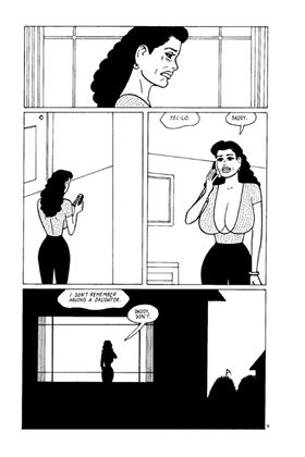 The problem here is that Hernandez has a difficult time as the storyteller and artist in conveying to me, the reader, exactly what little symbolic thing means when the dialogue as well as the flow of the story doesn’t match up with whatever he’s trying to tell me. For instance, there is a cave seen near the beginning of the story, near the middle, and at the very end that is supposed to – I assume because I’m forced to pull straws here – symbolize Dolores’ constant turmoil and loneliness within her world as an aging spinster who has yet to settle down and find a person who loves her for her.