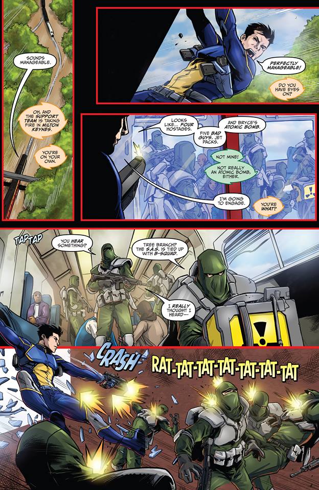 I definitely want to see a crossover between the U.S.-based G.I. Joe series and the England-based Action Man. Much to my delight I was not disappointed with this comic as far as an opening story goes. I wasn’t sure what to expect going in after reading the synopsis, it felt strange to focus the series on Action Man’s protégé instead of the known man himself however Barber concocts a brilliant way to make the transition fluid and natural while also being entertaining and character engrossing.