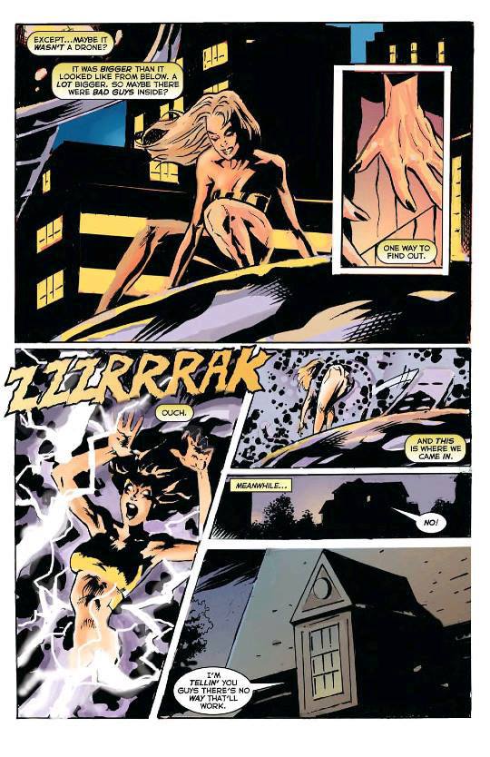The second tale takes place at a later time while she’s on a business trip with Uncy D, as a spacecraft begins wreaking havoc in the New York City. G-Girl attempts to take it out but is zapped and taken hostage. We get a short interlude of her brother hanging out with his friend scheming to make money off of G-Girl by posting nude pictures he secretly took of her on the internet, but the one female friend in the group nay-say’s the idea and tells the boys if they want to post any nude pictures on the internet they should be her’s.