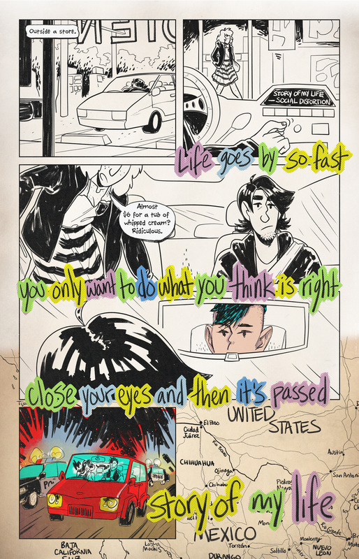 I like the way this is presented, the past or what if/was are done with colour while the reality is done in black and white. This is very indie style artwork too and it’s got own charm to it that is expressive and well done. It’s the kind of work that you can tell is done with love and care and tries it’s hardest to get the right mood, tone and feel across to the reader.