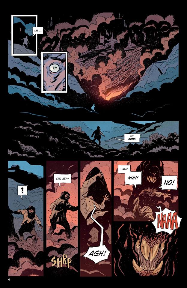 The other major element we get in this book is horror as the book actually opens up with a spacecraft crashing to Earth. We get glimpses throughout the beginning and middle of a few alien creatures now running amok in the land. Horror is very hard to get across in comics because sense of dread can be difficult to convey.