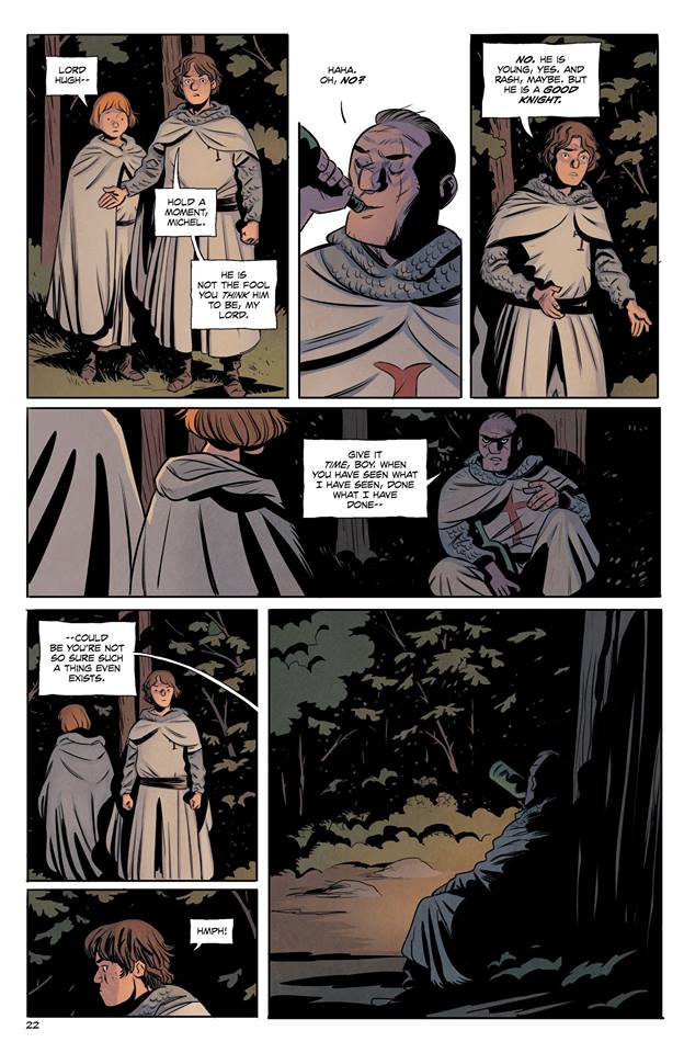 Not only are we introduced to them but we also get to learn a lot of about them in this issue as well. Taking place in the year 1220 AD during the Crusades, Lake Of Fire at first follows a few upstart Knights, Theobold of Champagne and Hugh of Blois. Technically Hugh isn’t a Knight, I believe he’s a squire. Either way, the story follows these two fellows at first, young adventurers who plan to join a Crusade to fight for God and win glory.