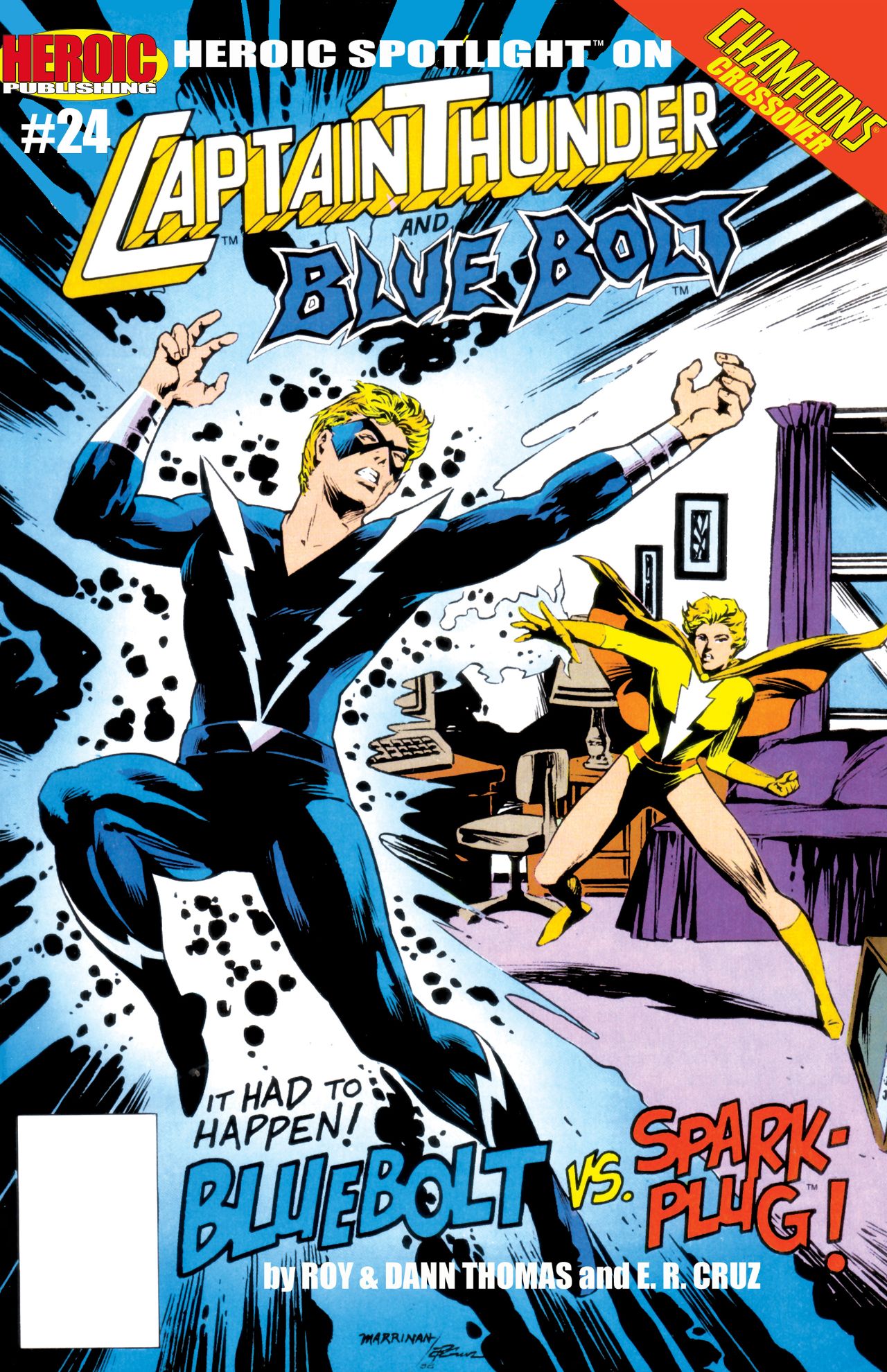 Summary: It had to happen! Bluebolt vs Sparkplug! Reprinting Captain Thunder & Blue Bolt #8 (June, 1988)