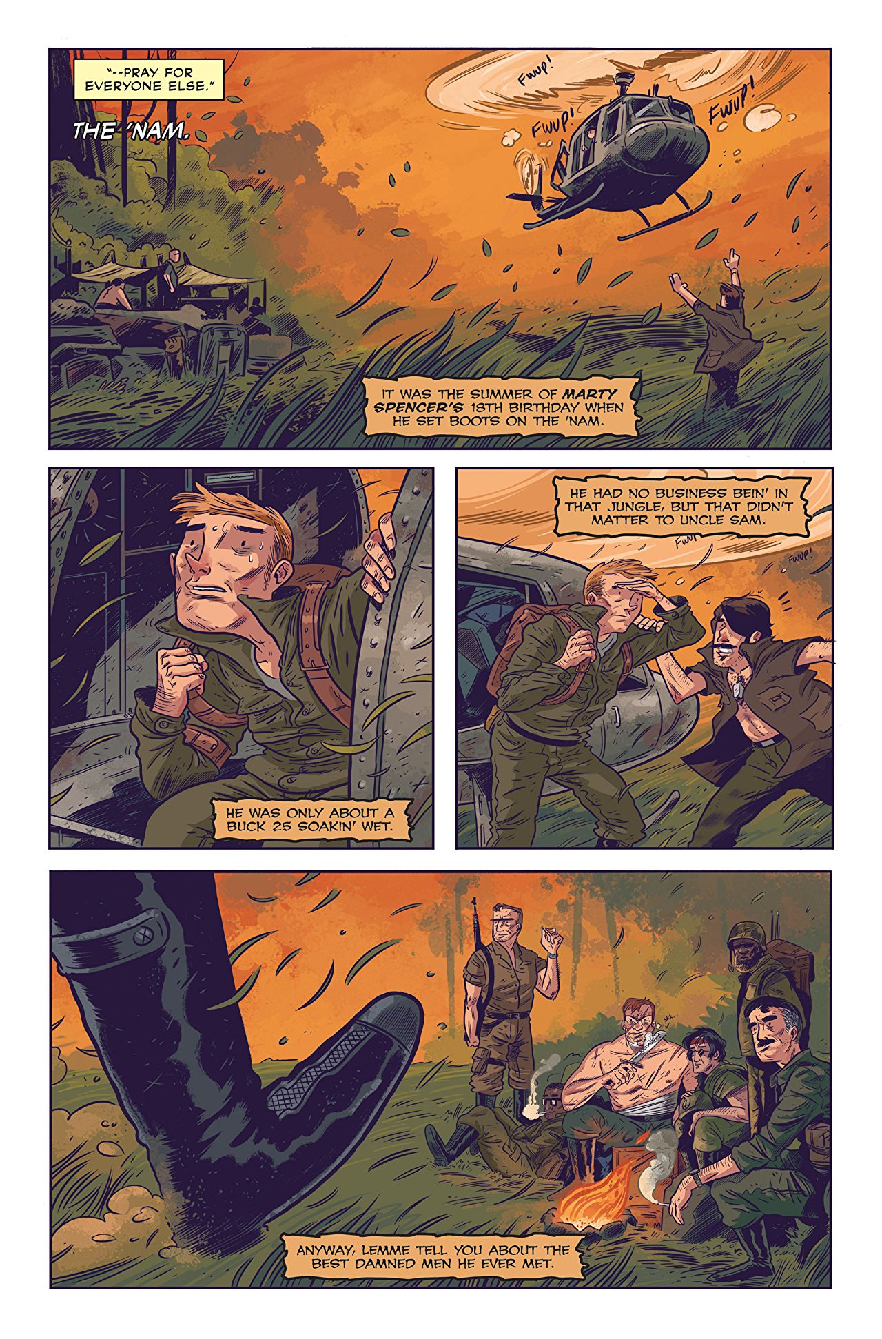 Fabian doesn’t waste any time in showing us and his new squad the family curse. It’s an approach I wasn’t expecting but the reaction all around is perfectly done. I think a monster is a monster regardless of what side it fights on is an interesting way to see this right now. Can Marty win over the guys in his squad and make a name for himself in ‘Nam while fighting the good fight and coming to terms with who and what he is? We’ll see but the fact that Fabian manages to weave into this so many questions begging to be answered is brilliantly done. It guarantees that i’ll be back to see what’s going to happen next.