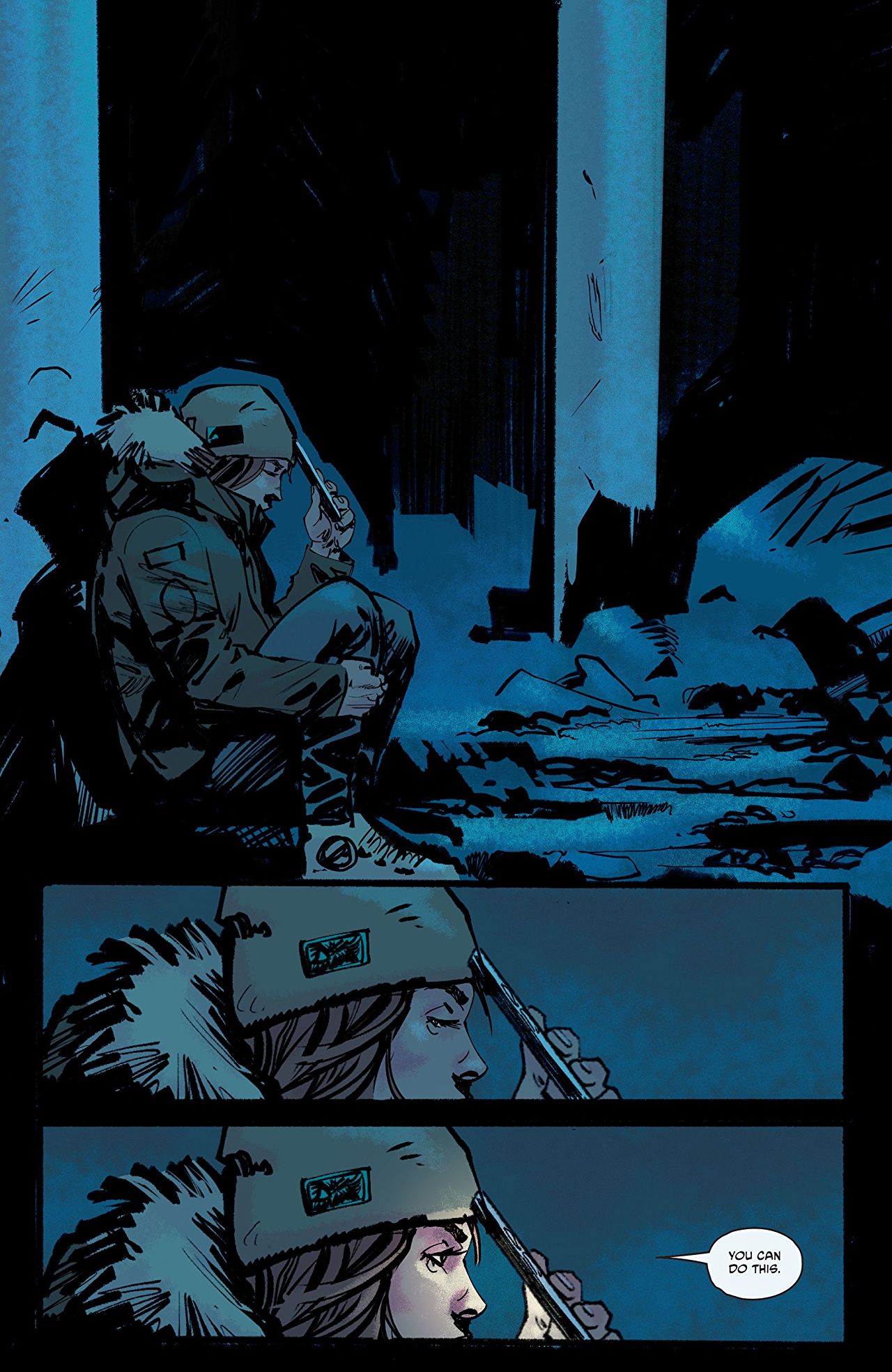 Babyteeth is a dark book and the art reflects that consummately. While not the most remarkable work you’ll find out there, Garry Brown gives us shadows and blackness throughout a story that cloaks itself in shadows and darkness. The opening scenes of Sadie among the ruins look especially good and feel as grim and lonely as you’d expect such a place to be. (Obviously, colorist Mark Englert has a hand in this well-executed mood-setting as well.) Brown’s work is rough-hewn and raw which, I believe, was a wise style choice; anything cleaner-cut may not have worked as well.