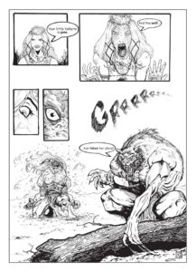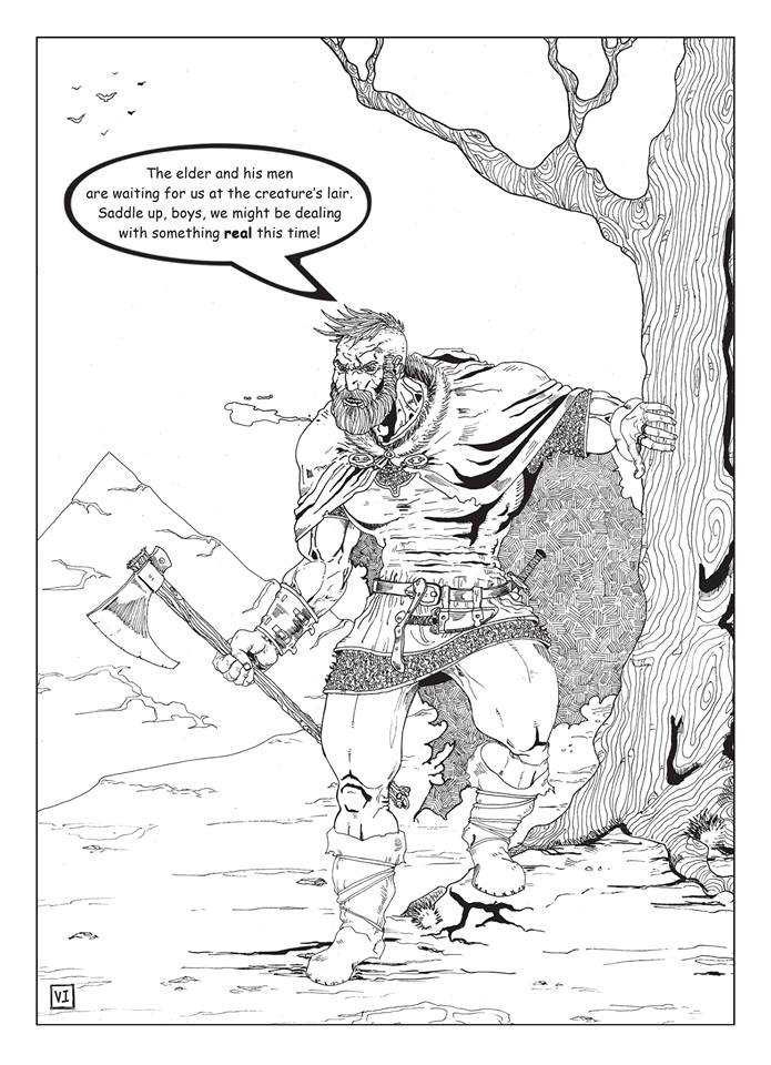 A group of hunters are hired to take out a fierce wolf that is being said to cause chaos in the area and has also taken a young woman hostage. So they meet up with the woman’s father to get a clearer debriefing before the battle ensues. The action in this comic is a lot of fun and there ends up being a supernatural element to the story too which I appreciated. Mateus does a great job setting the scenes for what to expect in the story as he fills the pages with flourishing words about Gods and monsters. Thor, Loki, and Odin.