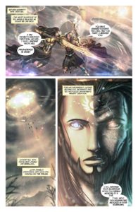 I have said it before and I’ll say it again, I LOVE when Biblical/Mythological themes are used in various forms of media. Whether its a novel, a comic book, tv show, movie, or otherwise. As there’s just so many ways you can tell a story with those kinds of themes. And Mark London has certainly given us a new entrant to enjoy with his first issue of Knights Of The Golden Sun! Less Mythological and more Biblical (unless you count the two as the same) and all kinds of enjoyable. Especially with that beautiful art done by Mauricio Villarreal! I’m curious as to what inspired Mark to create KOTGS, but whatever it was, I’m thankful as Hell for it as I’ve greatly come to love his work done in other Mad Cave Studios books like Battlecats and Midnight Task Force. The fact this is set in the very olden times instead of current is another nice touch and Mauricio certainly captures it all very well with his art and the double duty with colors!