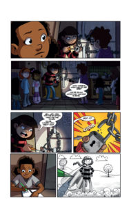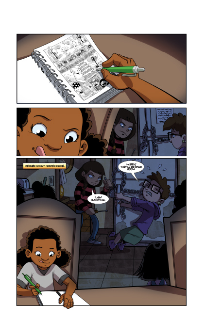 Penny-Farthing Productions in my view has done it again with another spectacular offering. And this time in the form of Audrey’s Magic Nine. A title I wasn’t sure of what to expect when I first began but instantly wanted more once I got to the 135th page and found there was no more. Much to my immense sadness. Have to admit though, certain parts near the beginning honestly managed to anger me cause of the things witnessed on the pages. Such as cruel foster parents and douche bag neighbors I wouldn’t ever dare call a friend. Much kudos to Michelle Wright for causing me to feel that way nearly right out the gate as I began this. And while this is meant for kids, its also meant more for those who’ve experienced the adoption life for better or not so better. And in this tale of an adoption story, we meet little Audrey. Who’s got quite the skilled talent for drawing at such a young age! Heck, makes me rather envious too! Anytime you see her art, its like a comic within a comic and that’s pretty great.