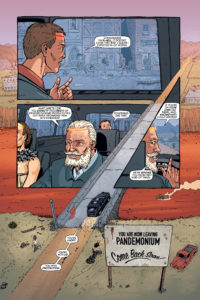 In issue #1, our protagonist Mark has barely arrived in Hell when his throat is slit. The point of the attacker — Jack the Ripper — was to put Mark in his place. From a narrative standpoint, it also lets us establish that people heal and explain a little of how this works. There’s actually not a whole lot of violence in issue #1, but it feels really intense and violent. In issue #2 and the forthcoming #3, there’s more violent conflict.