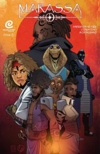 Summary: Princess Mara is a retired space pirate who gave up the life to raise a family. But what happens when her charmingly thieving, troublemaking twin brother, Sa, visits her with the map to their late parent’s lost treasure? An adventure that garners the attentions of other space pirates, bounty hunters, humanoid snake doctors, cosmic Voodoo, and breathing wooden mask babies.