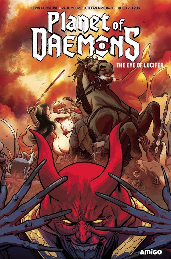 Amigo Comics is thrilled to announce that the first collection of their acclaimed miniseries PLANET OF DAEMONS is heading to the shops in May 2019! Described by one reviewer as “like a Hammer Horror film written by Neil Gaiman”, PLANET OF DAEMONS: THE EYE OF LUCIFER is a bewitching story of occult adventure created by the British duo of writer Kevin Gunstone (FUTURE PRIMITIVE) and artist Paul Moore (THE LAST HUNT).