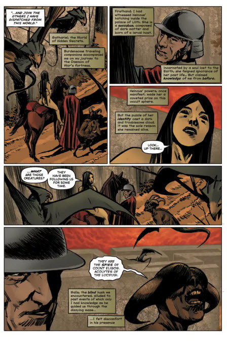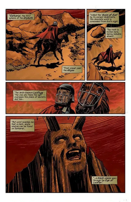 In The Eye of Lucifer, Amos arrives on the world of Sathariel pursuing a daemon of war. But in the ruins of the Palace of Lilith, he witnesses the hatching of an all-powerful Succubus Queen – a reincarnated soul who shares a puzzling connection to his past. Amos, to solve the riddle of her identity, must enter Sathariel‘s dread labyrinth and confront the truth behind the tragic events leading to his arrival in the Qliphoth years earlier…