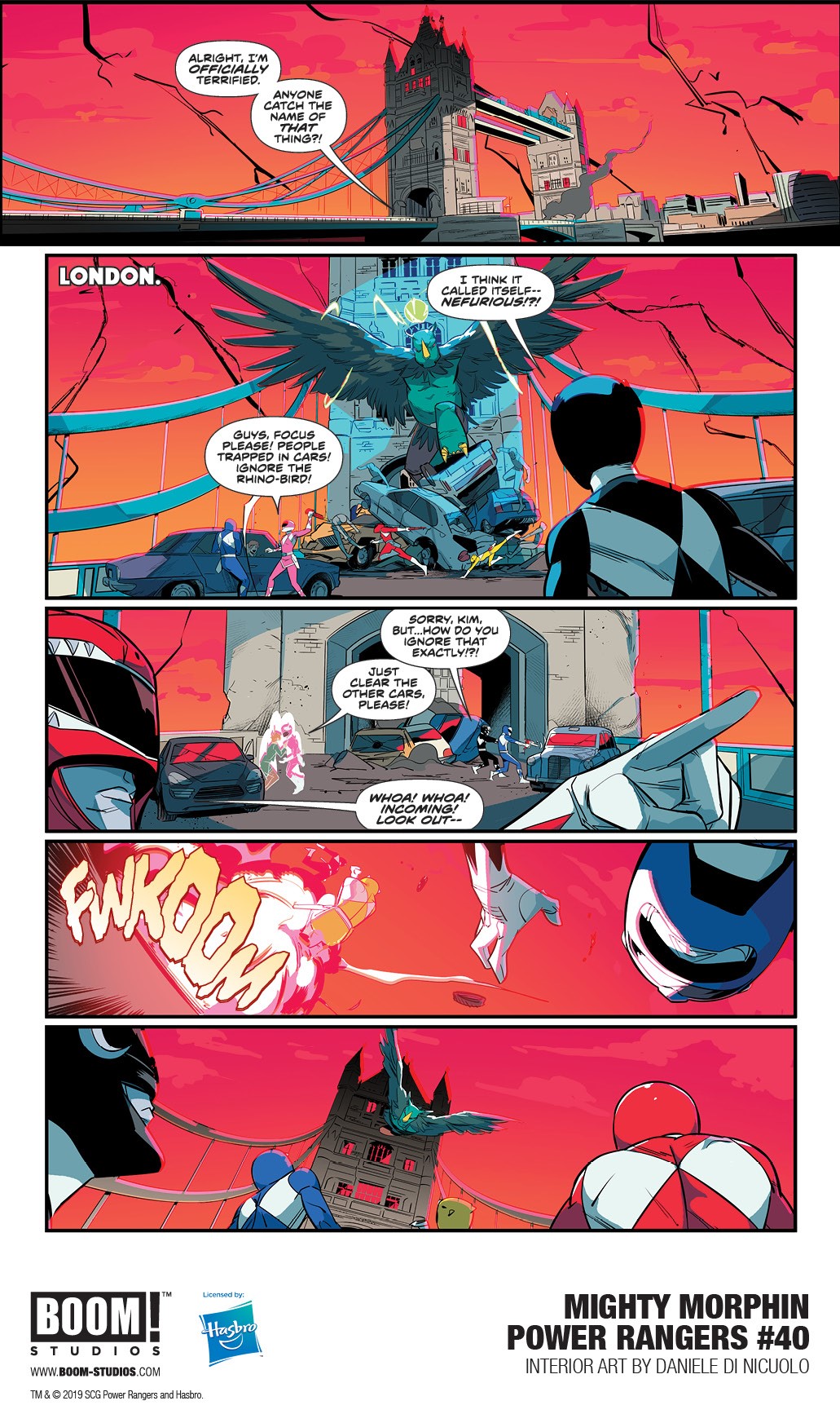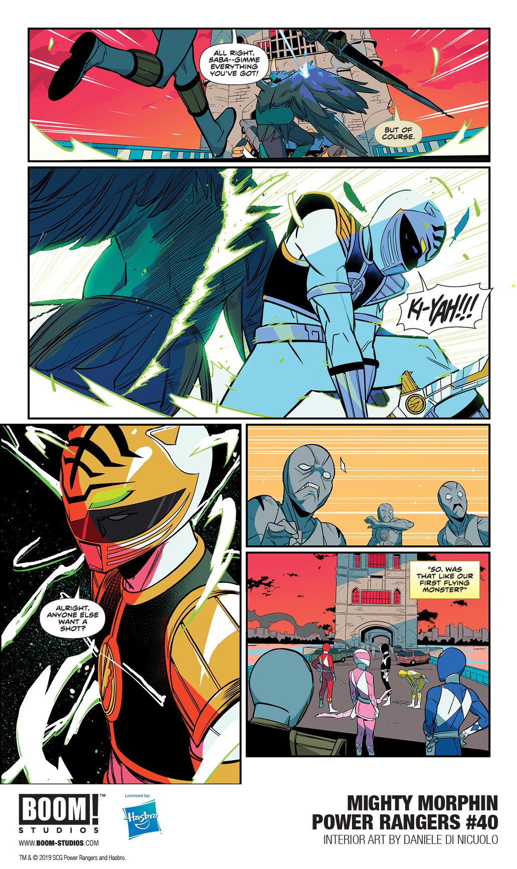 Print copies of MIGHTY MORPHIN POWER RANGERS #40 will be available on June 26, 2019 at local comic book shops (use comicshoplocator.com to find the nearest one), or at the BOOM! Studios webstore. Digital copies can be purchased from content providers like comiXology, iBooks, Google Play, and the BOOM! Studios app. Softcover collections of MIGHTY MORPHIN POWER RANGERS, and other Power Rangers releases from BOOM! Studios are available now, everywhere books are sold.