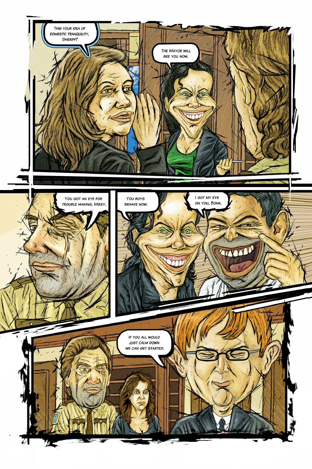 In other words, it does what any good second issue does. It opens of the world of Weirdsdale a bit more and keeps the momentum of the narrative going in a fun and interesting way. Issue #2 focuses on Inspector Marla, still looking for her sister, and Sheriff Bonk (great name) first taking a trip to the mayor’s office, and then teaming up to continue the search for her sister,