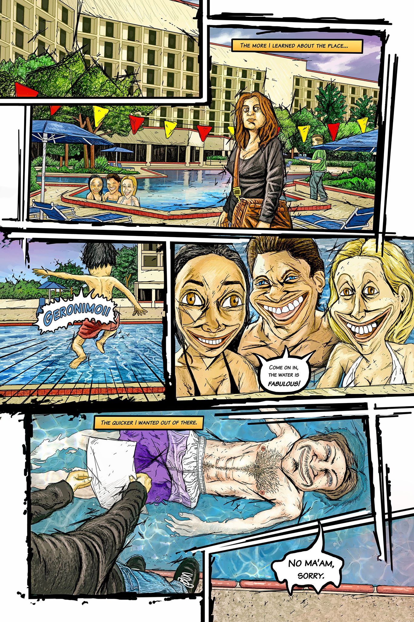 From there the comic takes a right turn into, well, Weirdsdale as we switch characters and focus on Inspector Marla Galloway who’s looking for her twin sister. Last known whereabouts the town’s club and spa. The Smeets’ are really good at building atmosphere for the uniqueness that the spa hides within its wall. The people there are of not just any shape and size, but other-humanly shape and size.