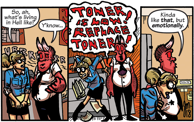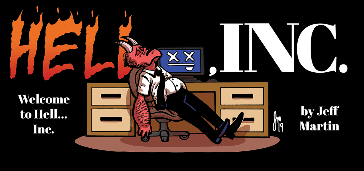 On Monday, August 19th, award-winning cartoonist Jeff Martin will be launching the Kickstarter campaign for the first two print collections of his webcomic, Hell, Inc. The two 60 page books, titled “Welcome to Hell… Inc.” and “Candied Sheep Day,” will collect the first two years of Hell, Inc. strips along with two short stories exclusive to the print volumes.