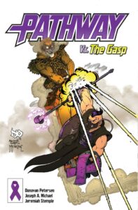Jeremiah himself is someone who is dealing with Cystic Fibrosis himself and Pathway #1 is one way for him to try and bring more awareness of the condition to those who might not exactly be aware of it. And as well as give those with the condition, a hero they can relate too. Now I’ll admit I wasn’t exactly impressed with the villain of the story known simply as ‘The Gasp‘ as he could have handled things in better ways rather than going the villain route. Especially when his kid needs him more as a father, rather than as a villain. Yes, it can be frustrating when things aren’t going as you hoped they would. Especially when a hospital refuses to help your kid for whatever reason but going the bad guy route just isn’t a good move. Especially when its not something your own kid needs in any way.