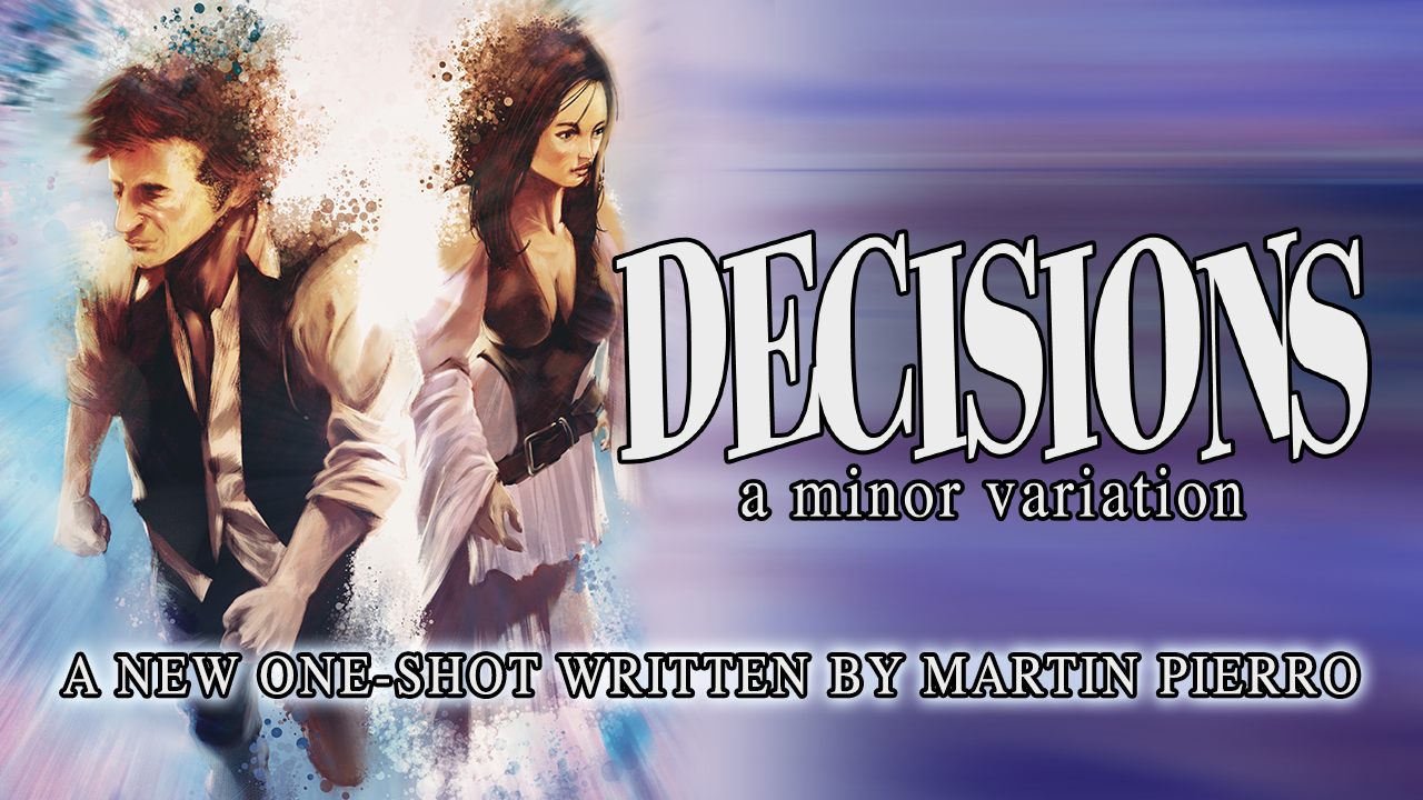 Decisions: A Minor Variation contains TWO stories both written by Pierro, the first “I hear a Train a Comin” finds John, a man literally at a crossroads, he has lost all hope, he is giving up on his dreams and his very life. With time running out an etherial guide visits John to try to turn him down a different path. This story features the amazing artwork of Fredson Oliveira.