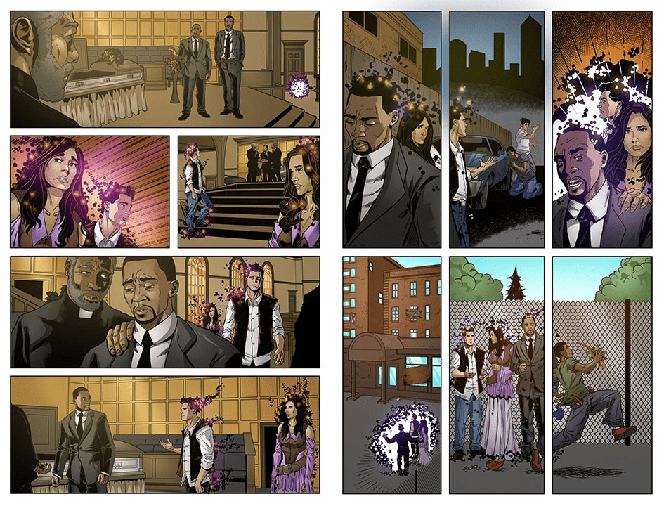 The second story “My Brother’s Keeper” features artwork from Michael Dorman. The story begins at a funeral, we find Quinton grieving the loss of his younger brother. In anger Quinton and others blame another boy – Dante for leading his brother down a path that brought him to the grave. Two etherial guides arrive and take Quinton on a journey through his past that will change his perception and will force him to face a hard truth.
