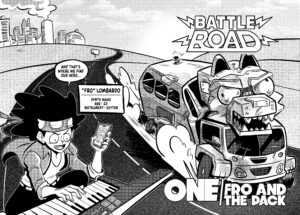 Some time ago, musical instruments were imbued with magical properties that gave musicians extraordinary powers. The meaning of the phrase “Battle of the Bands” became something much more real. Eventually, a road was built that passed through all of the world’s most popular —and most dangerous—music venues. Battle Road became a thing of legend, inspiring musicians far and wide to follow it in search of fame and fortune. “Fro” Lombardo, a budding Synth Mage, sets off on Battle Road alone with his keytar, in hopes of finding his perfect band along the way.