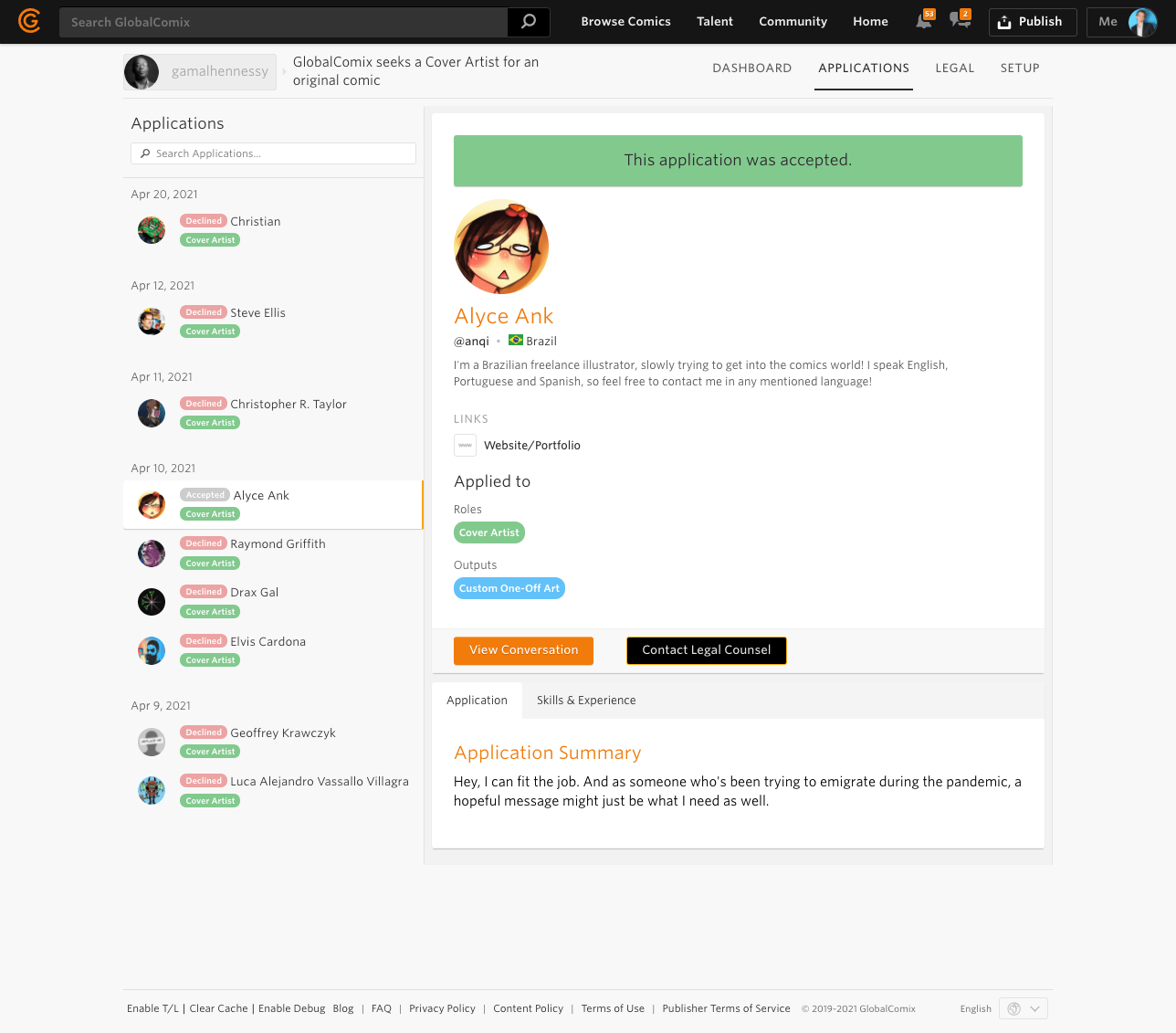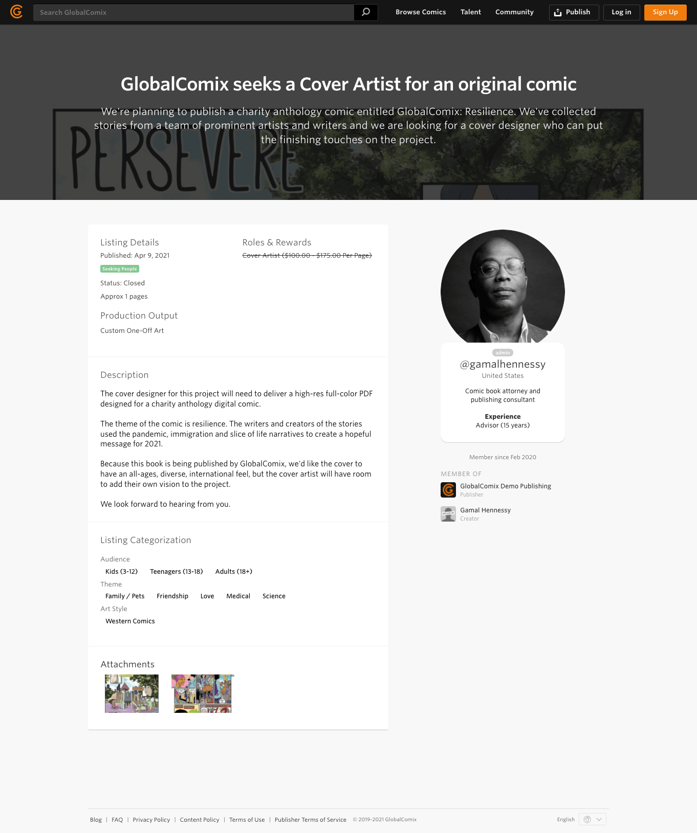 To assist them on their endeavor, GlobalComix has partnered with Creative Contract Consulting (C3), a boutique legal practice specializing in comic book contracts and IP licensing to provide free legal consultation for creators using the Talent Marketplace. C3 is founded and run by Gamal Hennessy, ESQ, a trusted leader both in legal representation and publishing, bringing with him the gravity of two decades of experience in the comics industry.