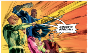 OCT. 18, 2021, (SEATTLE, WA) — Announcing Super Scouts, the super sentai parody, is now live on Kickstarter! Written by Ryan Little (Prometheus, The Breakfast Bunch) and art by Bruno Oliveira (Deadpool, Amazing Spider-Man), with letters by Nikki Powers, learn how four former co-stars must band together to tackle more than your average tabloid dispute.