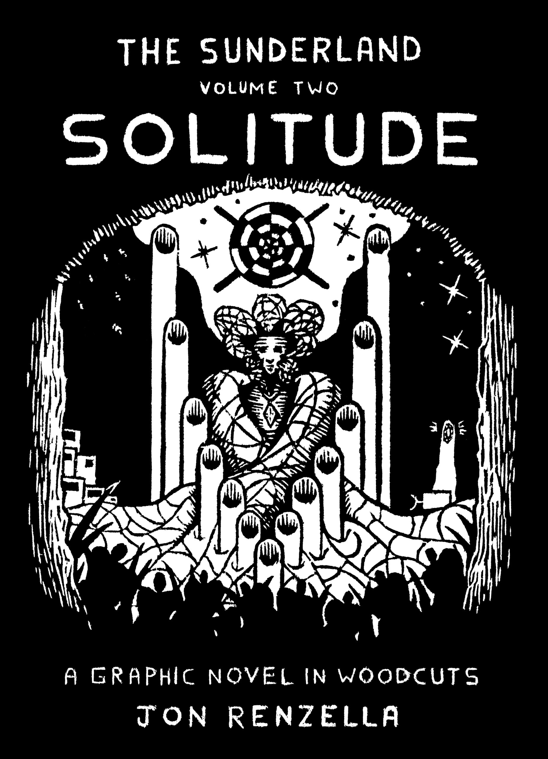 Solitude is the second volume of The Sunderland trilogy. As with the first book, Schism (2015), I created it entirely in woodcuts with digital text. It explores a world in which the major ideological subcultures have physically separated from one another, and the collective dissonance that ensues when an unexplained phenomenon occurs that each group interprets through its preexisting worldview. It is a commentary on both the current political and social climate as well as the human condition writ large.