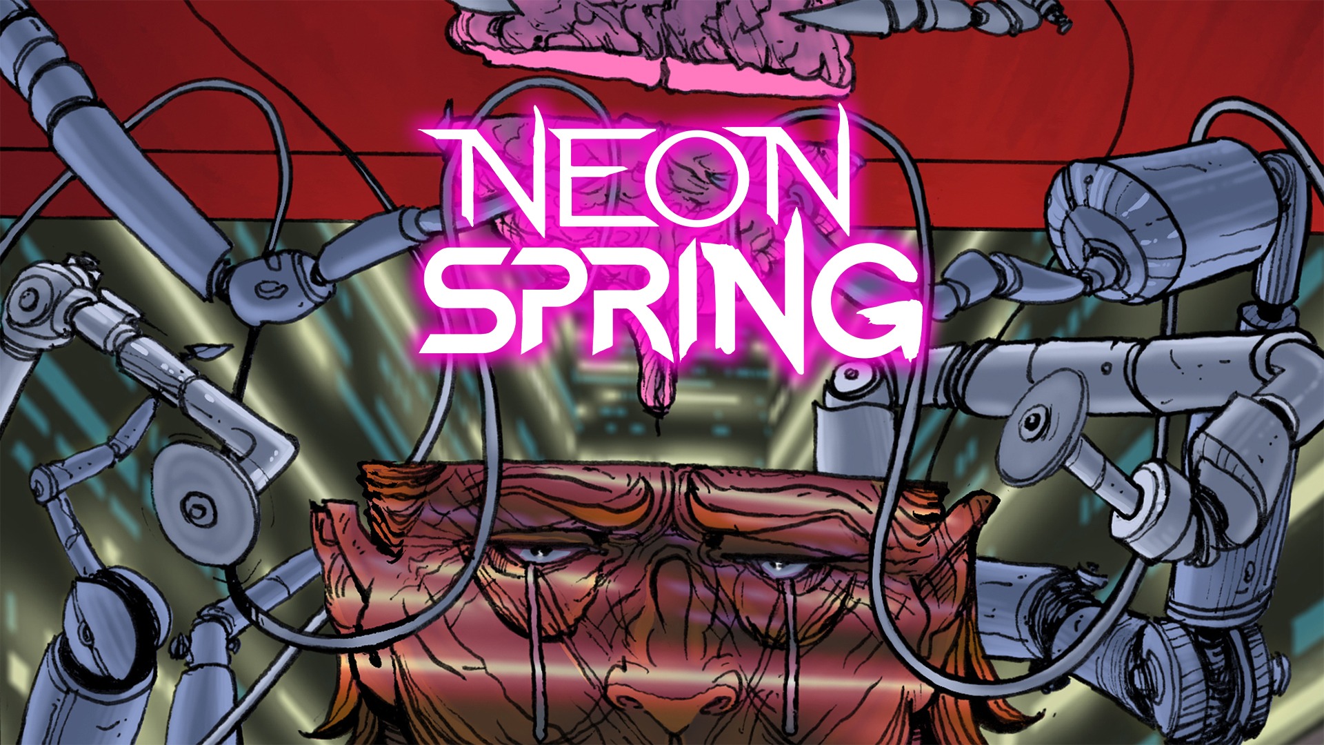 Neon Spring, Issue #0: This Car Neutralizes Douchebags introduces the Skull Squad and Mother, a car fitted with a superintelligent A.I., lobotomizing and extracting brains, only to refit them with a device to control the entire body.