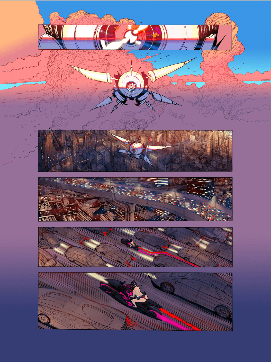 “Neon Spring began as a joke—two of my friends and I were laughing about L.A. traffic, and somehow I ended up on a rant about a driverless car that lobotomizes people,” said writer and artist Ian Cinco. “As we laughed hysterically at the idea, the time I spent absorbing and fantasizing about creating comics came to mind and this single joke coalesced into one of the most complete visions that’s ever come to me. It took five years and a pandemic to finally clear the runway for this project. Issue #0 is a brief glimpse into a future world where I intend to push science fiction and cyberpunk conventions as well as my own ability to generate mind melting ideas. You can expect pulp violence, thought provoking concepts and deep emotional character arcs. I couldn’t be more excited to share this wild ride with the world.