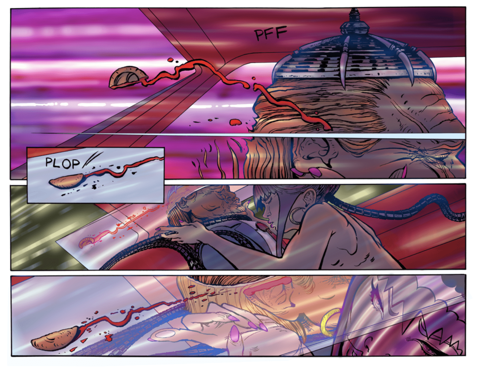It’s a twisted and epic journey of Master Skull, his daughter Araina, Baby Skull, her infatuation with the mighty robot Zuzu, and Mother’s rise to omnipotence of superintelligence.