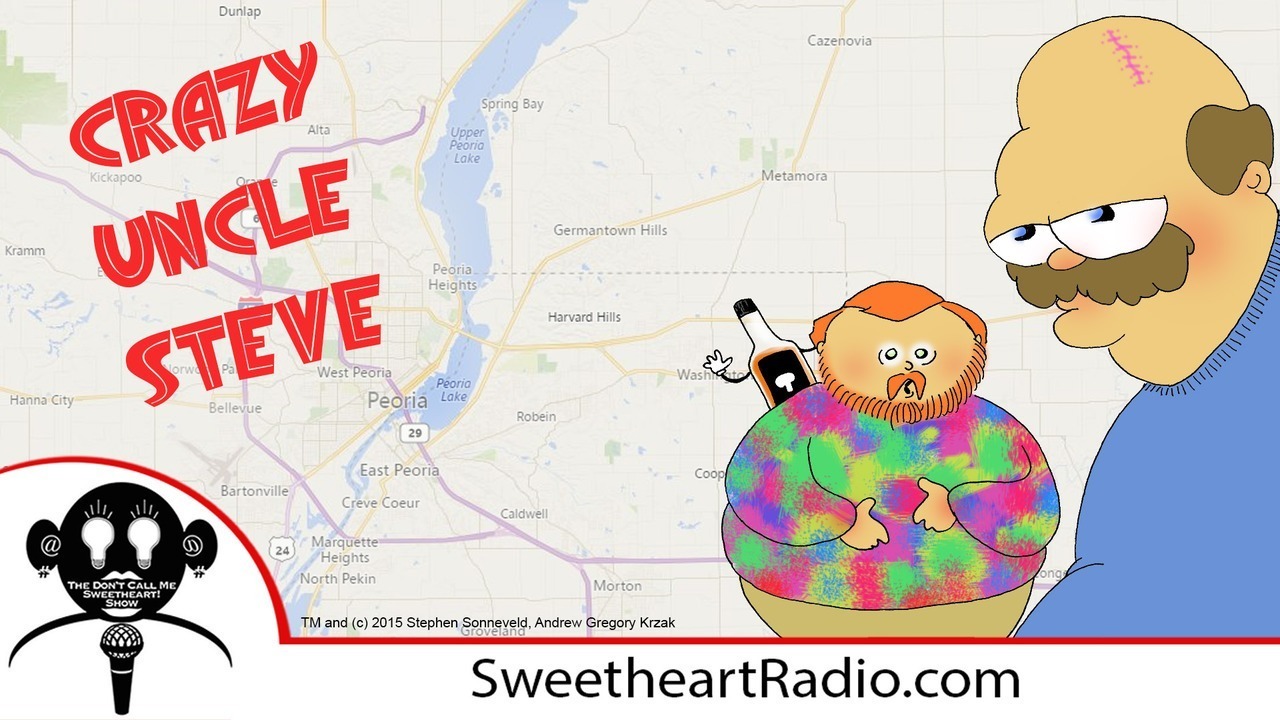THE DON’T CALL ME SWEETHEART! SHOW promo piece; Sweetheart logo by Andrew Krzak; “Crazy Uncle Steve” art by Stephen Sonneveld