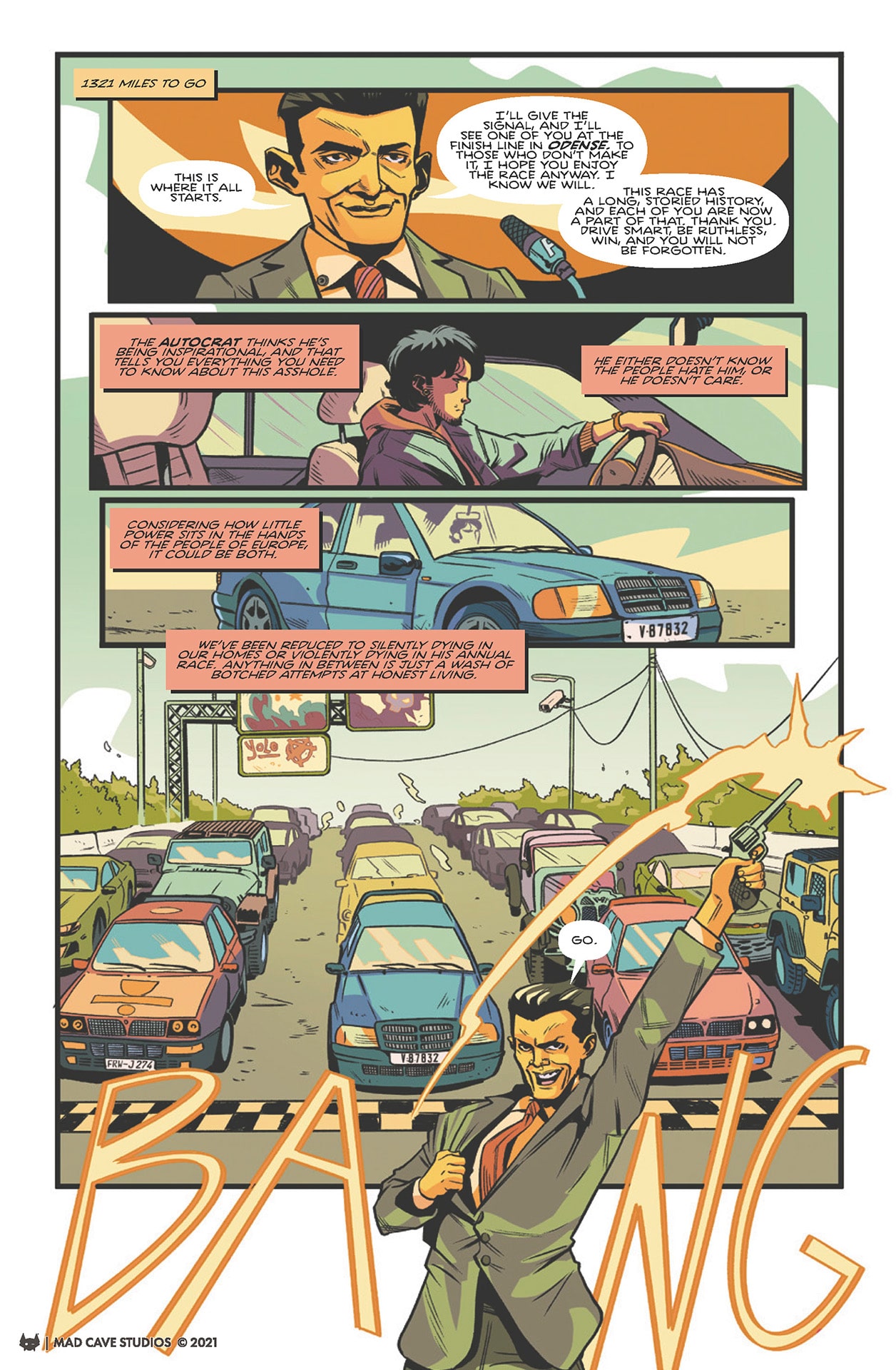 Summary: In the future, Europe has united under one man, The Autocrat. He rules the apocalyptic landscape from corporate monopolies with a vision of unity that is gospel to some, but hollow to others. To distract the 99% from their poor and empty lives, they are given the opportunity to compete in the Grand Race. A marathon street race through Europe where only one driver can make it to the end and win a life of luxury.