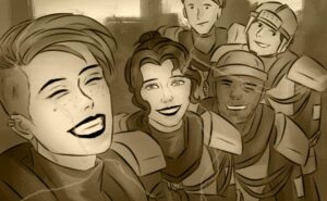 Fell Hound is a queer, asian canadian comic creator from Toronto. She is best known for her work on the award-winning Commander Rao with Scout Comics, as well as her love of drawing sword ladies on the internet. Her work has been featured in numerous anthologies such as Project Big Hype, Yule, and Boston Powers. She was also a creative advisor on the recent Color of Always anthology – a collection of queer love stories. When not giving herself rampant carpal tunnel, she enjoys watching Arcane, making cooking videos, and consuming queer fiction.