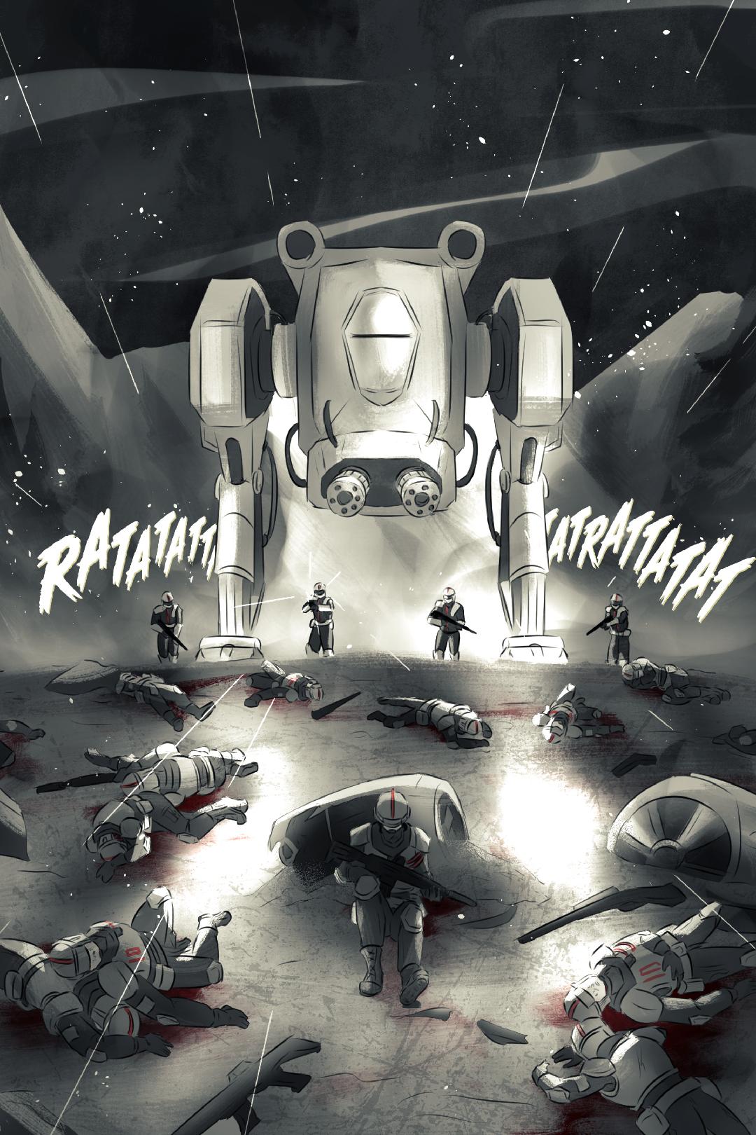 In the wartorn future of 2X66, a young soldier lies dead on the battlefield, waiting to be buried in a mass grave with her platoon. Victim to a cruel and unending war, the only mark of her existence is a memory–slowly bleeding out onto the rotted earth: The joy. The sadness. The excitement. The loneliness. The love. The fear. A lifetime of memories. Bled out one by one. Soon to be forgotten forever.