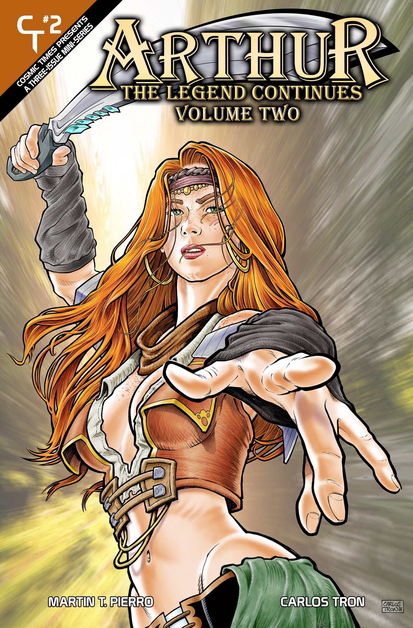 The gap between Volume I and Volume II was never meant to happen. I actually plotted this second series and wrote the first issue back in 2010, however Cosmic Times really started to expand in 2011 and I put my own pet-projects on hold to help develop other titles as I took on more creators. By 2014 we were nationally distributed by Diamond and I really focused on building the company and less on my own projects, so Arthur was put away. Fast-forward to the COVID times and I was looking for something to get me excited about comics again and it was my son who suggested that I bring Arthur back. Obviously the industry had changed in the years between, most notably the rise of Kickstarter … A platform that took me sometime to embrace. So last year I partnered with a new and incredible artist Carlos Tron to take another swing at the once and future King.