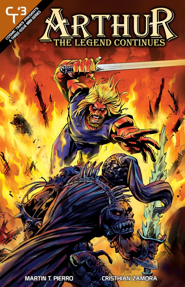 Thank you for doing this interview, it’s highly appreciated. I’m Martin Pierro the owner, publisher, editor, and occasional writer for Cosmic Times. I started Cosmic Times in 2008 out of sheer boredom. I had spent a good chunk of my life working in film, television and on stage … Yet suddenly found myself working a 9to5 IT job. While I enjoyed the people I worked with, the job was creatively stifling. A friend of mine and I had plotted out and written a 6-issue mini-series … But that project cooled and we went our separate ways. I still wanted to publish a comic, so I dusted off an old concept I had been sitting on for years and launched Cosmic Times to publish my story. MegaCon 2009 rolled around and there I was with my first book – Arthur: The Legend Continues.