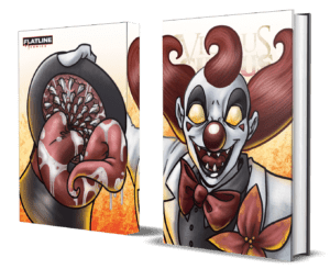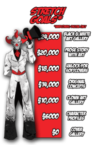 We completed the first four issues of Clown Town, the title that would become Vicious Circus, in 2011, on the heels of its primitive formation as part of a little internet comics competition called Small Press Idol. Amanda Rachels and I developed the idea at a Starbucks in Foley, Alabama, on a Sunday afternoon in January, when she sketched out the original image of the clown who would soon morph into our beloved demonic clown, Stilts: