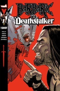 Missoula, MT, 04/25/2024 – Vault is thrilled to announce a Barbaric vs. Deathstalker one-shot is coming to comic book stores everywhere on July 24th, 2024. Co-written by Michael Moreci & Tim Seeley, drawn by Nathan Gooden, colored by Fabi Marques, and lettered by Jim Campbell, the epic overlength issue features two of the most iconic sword and sorcery heroes locked in epic battle! Cursed barbarian versus warrior king! Axe versus sword! Owen versus Deathstalker! When an evil wizard summons the two most reluctant heroes of all time, they’ll have to square off. But a clash of steel alone may not decide the final victor.