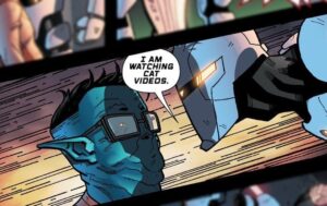 Now had Crash and Troy done some research prior to busting ol’ Jongil out of the joint, they likely wouldn’t have done the deed to begin with considering how much of a dictator is. But of course, we’d not have this edge of your seat story if that happened. And I love how one simple mistake on Troy’s part is what gets our boys caught later on, a mistake that Troy’ll probably never make again unless he’s too distracted by cat videos again. Now said mistake leads us to meeting Agent Delphi, a member of the Wexian race where Jongil is from and pretty much a no-nonsense kinda gal. One who’s not afraid to call Crash out on his crap either as we later get to see thanks to the fact she has to work with the two boys.