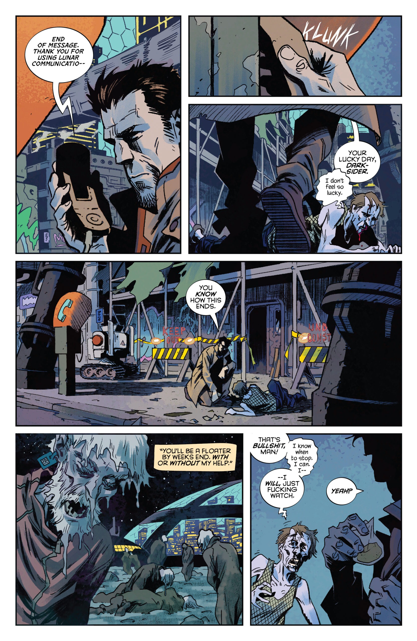 Missing on the Moon takes readers into a dystopian lunar colony where the collapse of the Soviet Union left behind the Darksiders—oppressed Soviet colonists forced to the edge of survival. The story delves into a dangerous drug called Stardust that zombifies its users, government coverups tied to child disappearances, and a tense struggle between those in power and those left behind. All told, there’s a lot of story packed into these four issues.