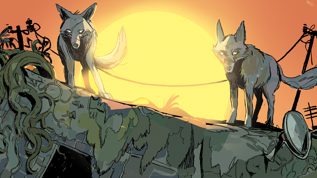 Typically when it comes to Post-Apocalyptic stories, you tend to see certain things with them; struggles to survive, new forms of society, all that jazz. But you don’t typically see Detective Noir themes in Post-Apocalyptic stories unless I’ve just not been paying enough attention. But Mad Cave’s Maverick imprint is doing just that with the first volume of Tectiv, which is due out in December. Tectiv is the story of Bingo Finder, the only apparent literate individual in Post-Apocalyptic LA that scavenges to make ends meet along side her best friend, Fenn. Which as the saying goes, reading is fundamental and that’s never been more true here for this story. As it later provides a huge aide for Bingo after Fenn vanishes and the blame’s laid on the Coyotes. Which, like other animals in the world of Tectiv, have intelligence. Which is fun to see when we later see interactions between Bingo and King Coyote and as well as the most interesting ‘car chase’ I’ve ever gotten to see in any form of media since the Blues Brothers.