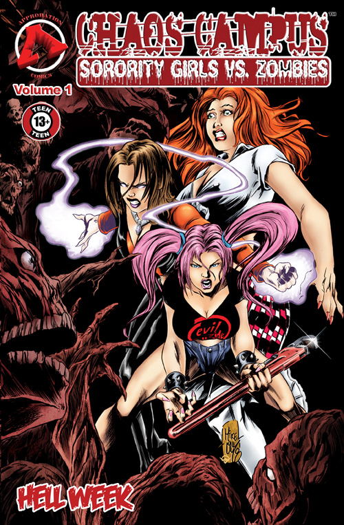 Approbation Comics’ Chaos Campus: Sorority Girls Vs. Zombies – Zombies have taken over the world and the only hope we have for humanity’s survival lies in the hands of three sorority girls – Jamie, Paige, and Brittany! Enjoy the fun side of a zombie apocalypse!