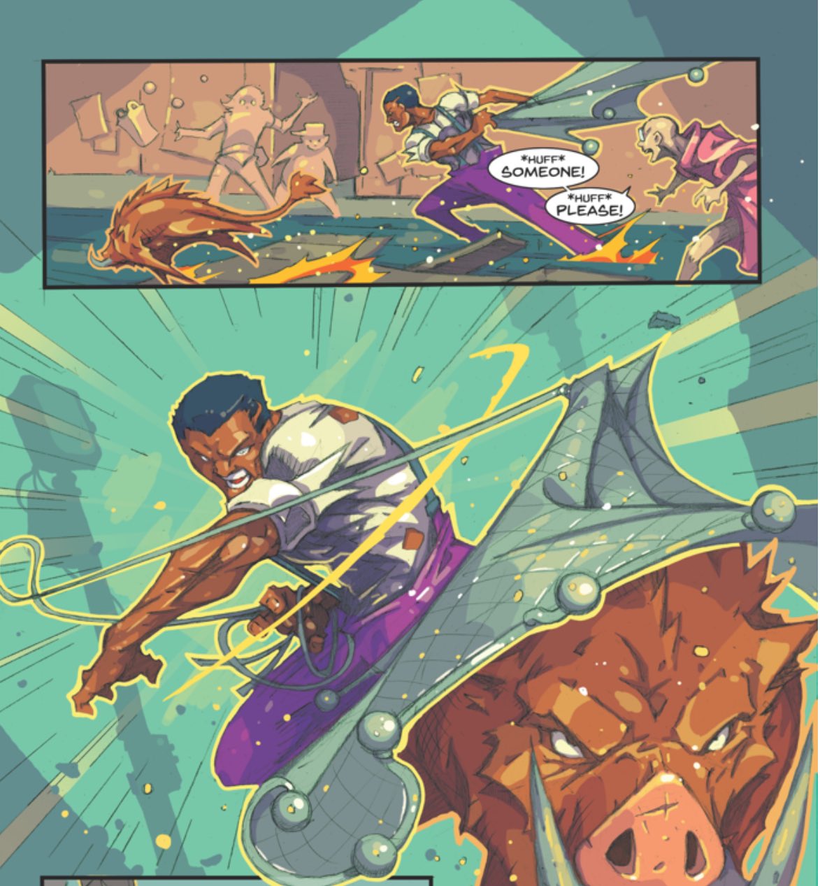 I’m also rather curious about the very informed stranger our Hunting Heroes encounter and how much of a role he’s going to play in coming issues. Especially where the apparent very REAL danger that the Rozmer is.