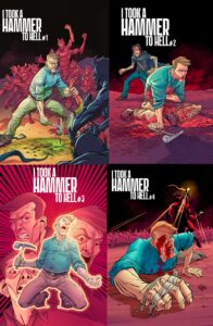 When I learned of this book courtesy of Matt’s promo work on Social Media in the lead up to the 4th issue’s successful Kickstarter, I got curious. Said curiousity got filled and I knew then and there I needed to check this title out and luckily… Mr. Garvey had thoughtfully included a print catch up tier on the 4th issue’s Kickstarter. Yay! Our man Jake Wilson is a man with nothing to lose and because of that, he’s come to a decision. One that normally, no one would make considering its Damnation but he’s willing to go early regardless. He’s also bringing a hammer with him too! These two things are what got me wanting to read ITAHTH and once I finally did… I didn’t want to stop until I got to the last page of the 4th issue.